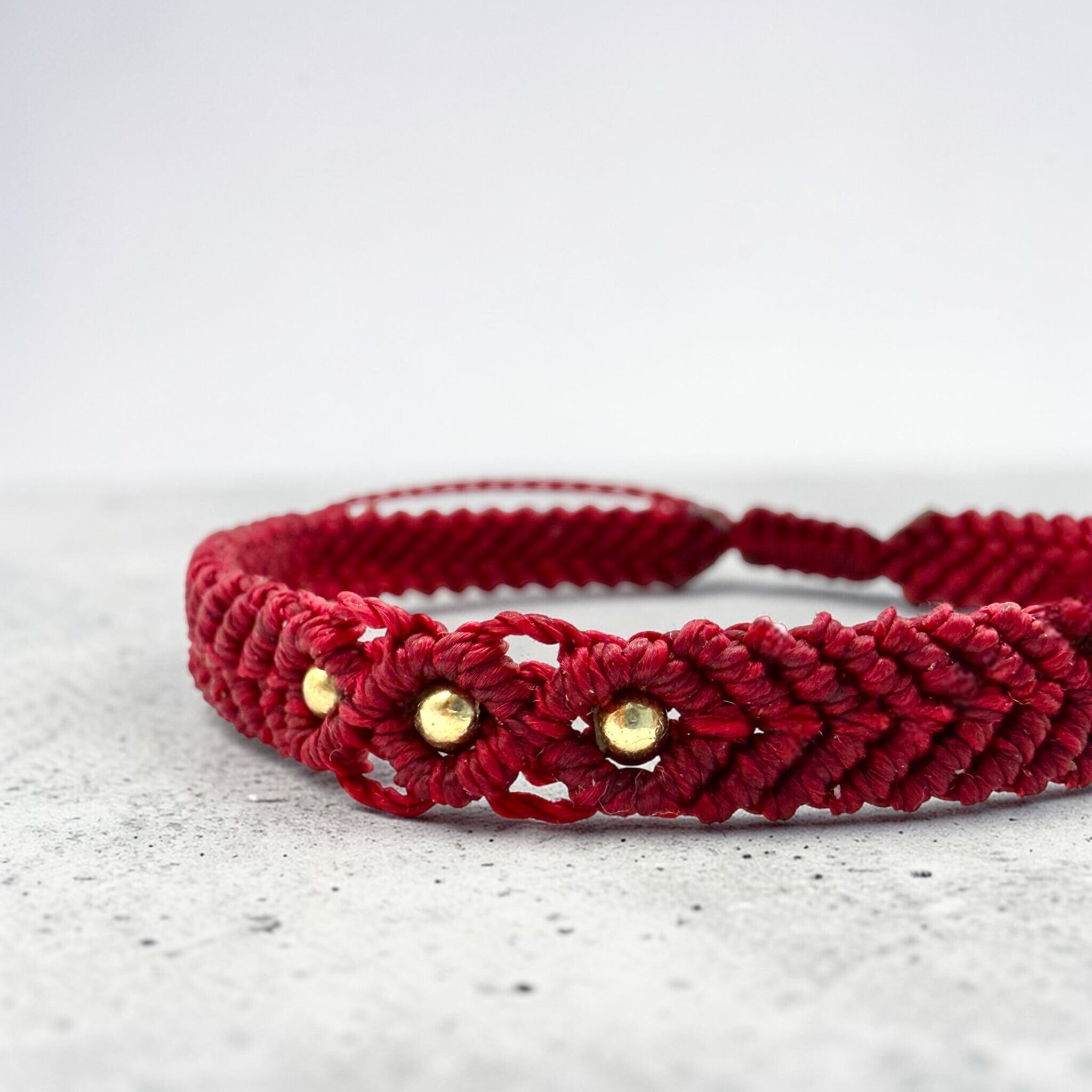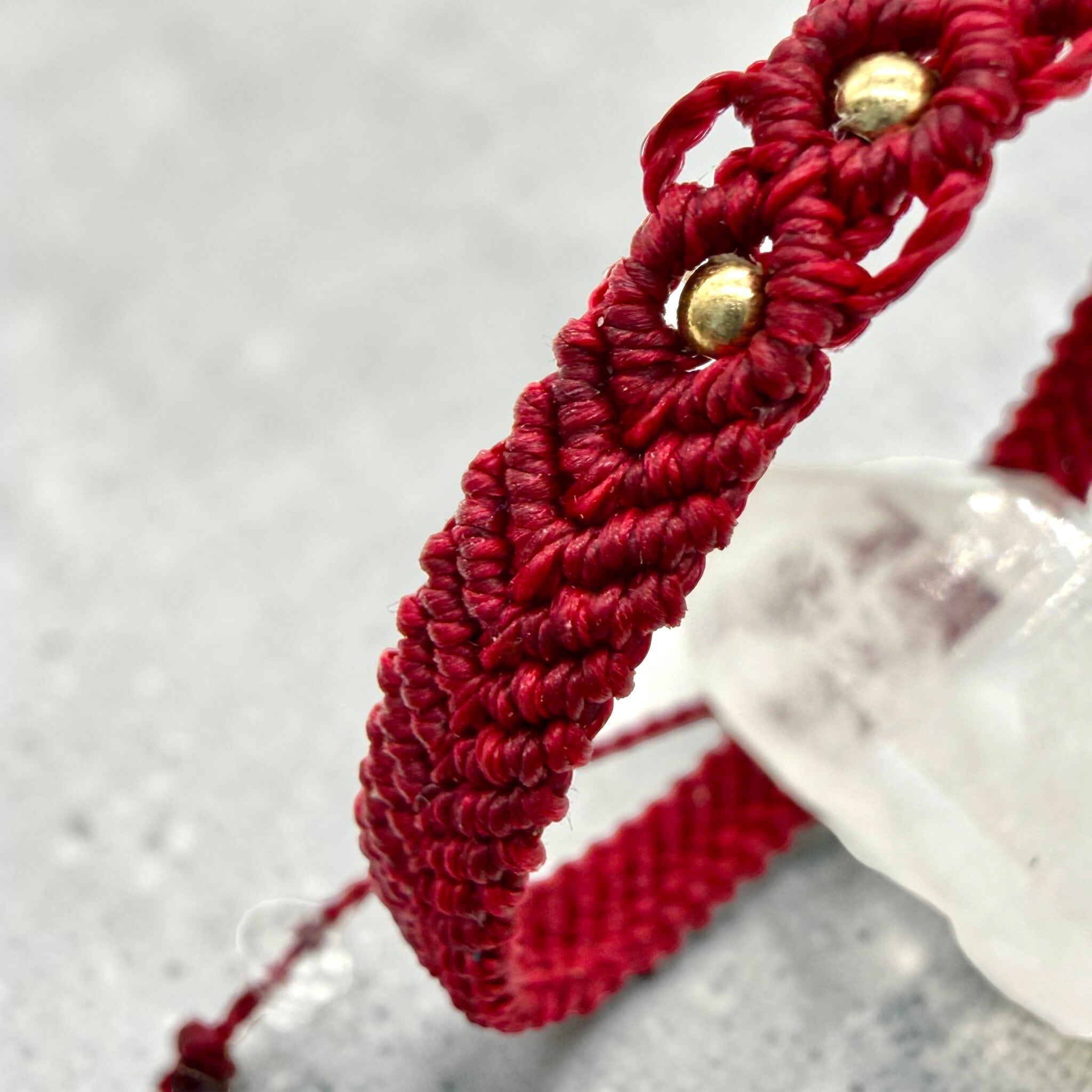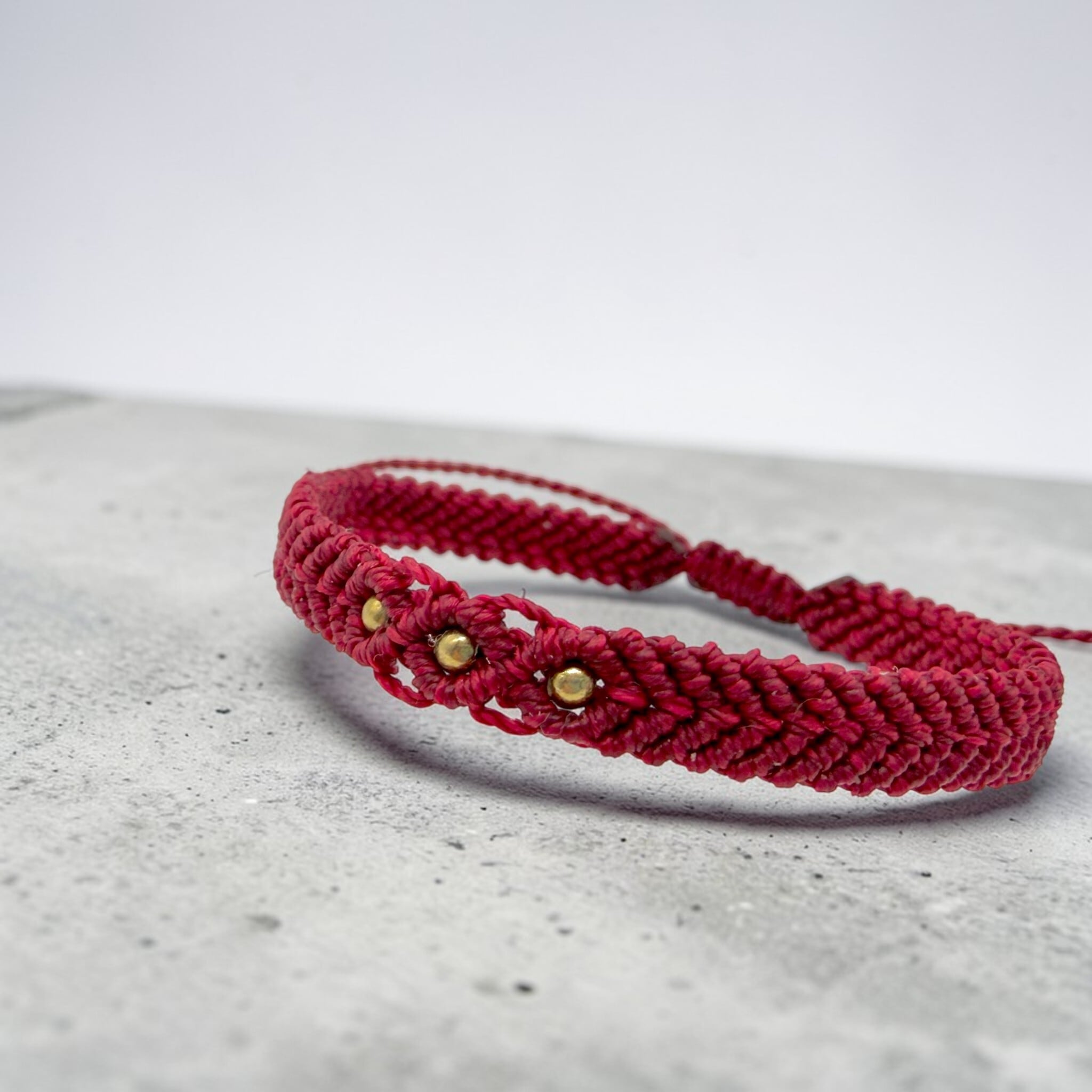 ワックスコードを一目一目手で編んだ、マクラメブレスレットです。