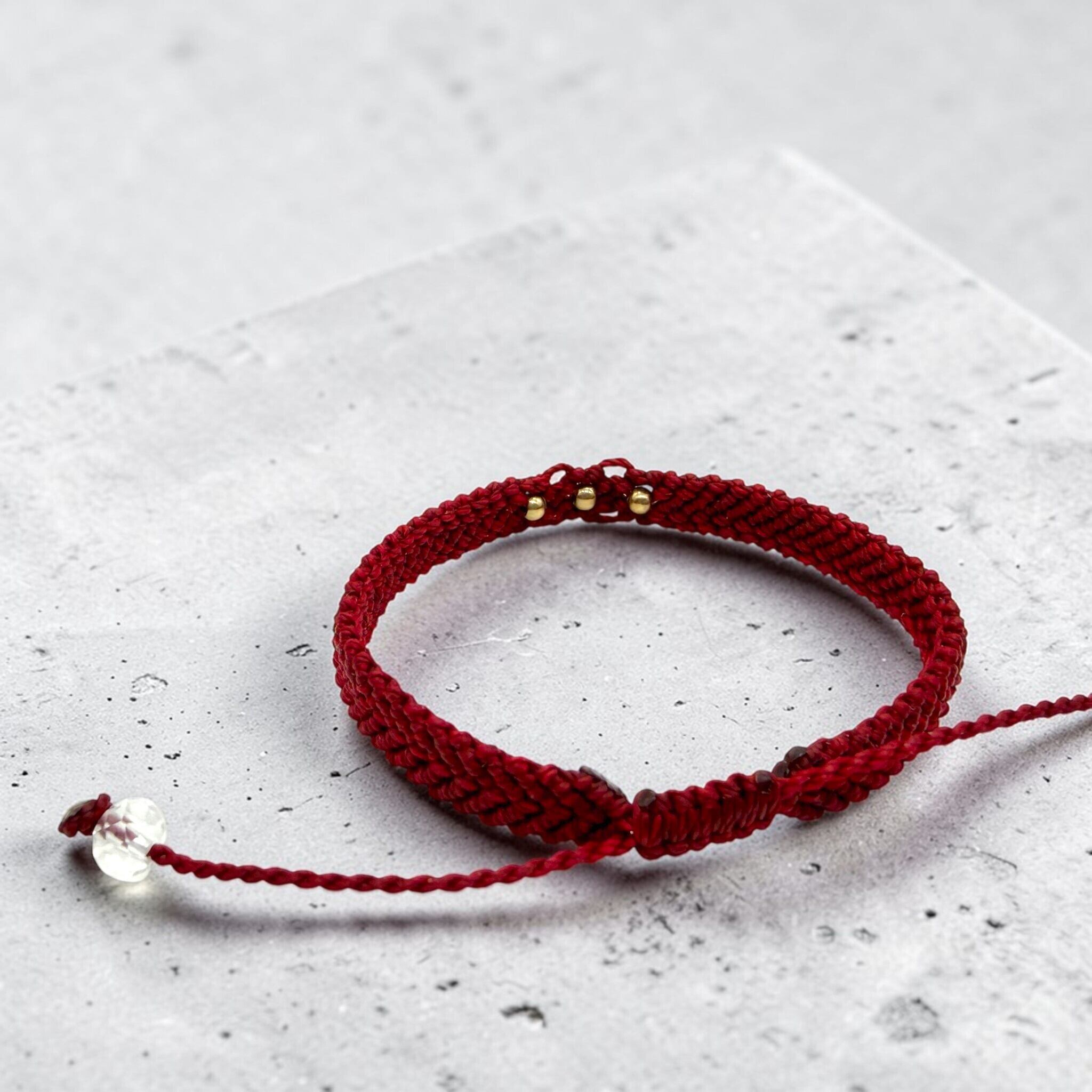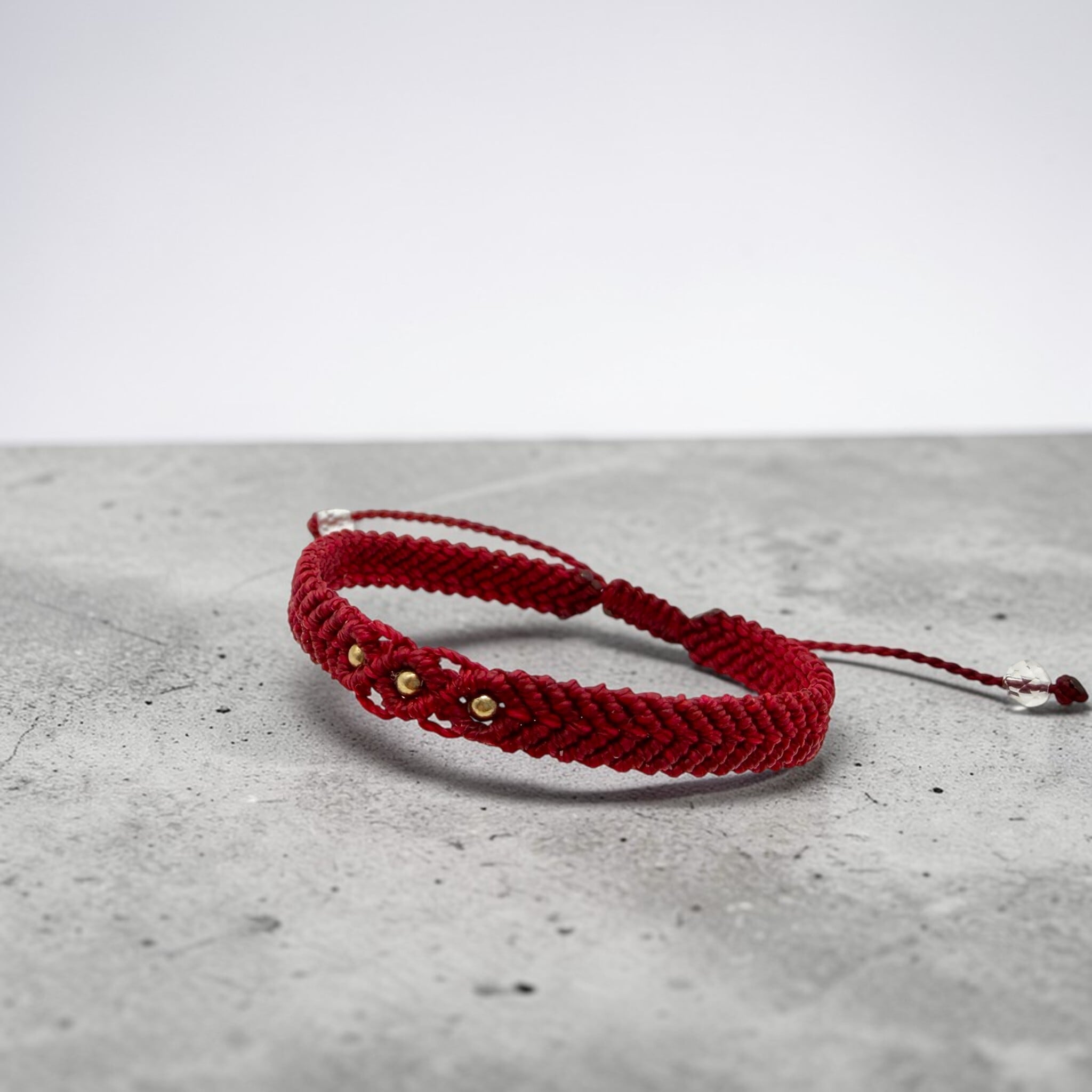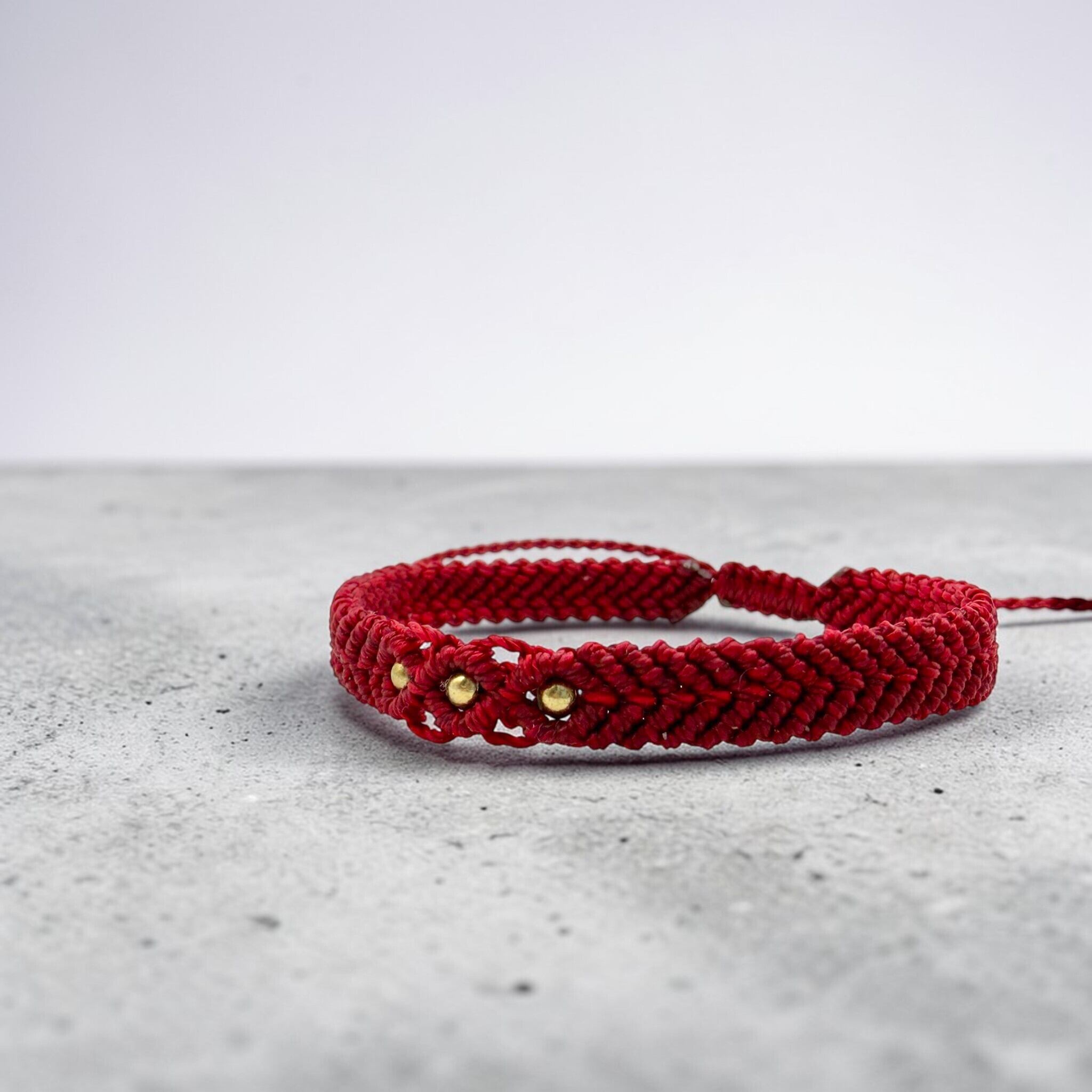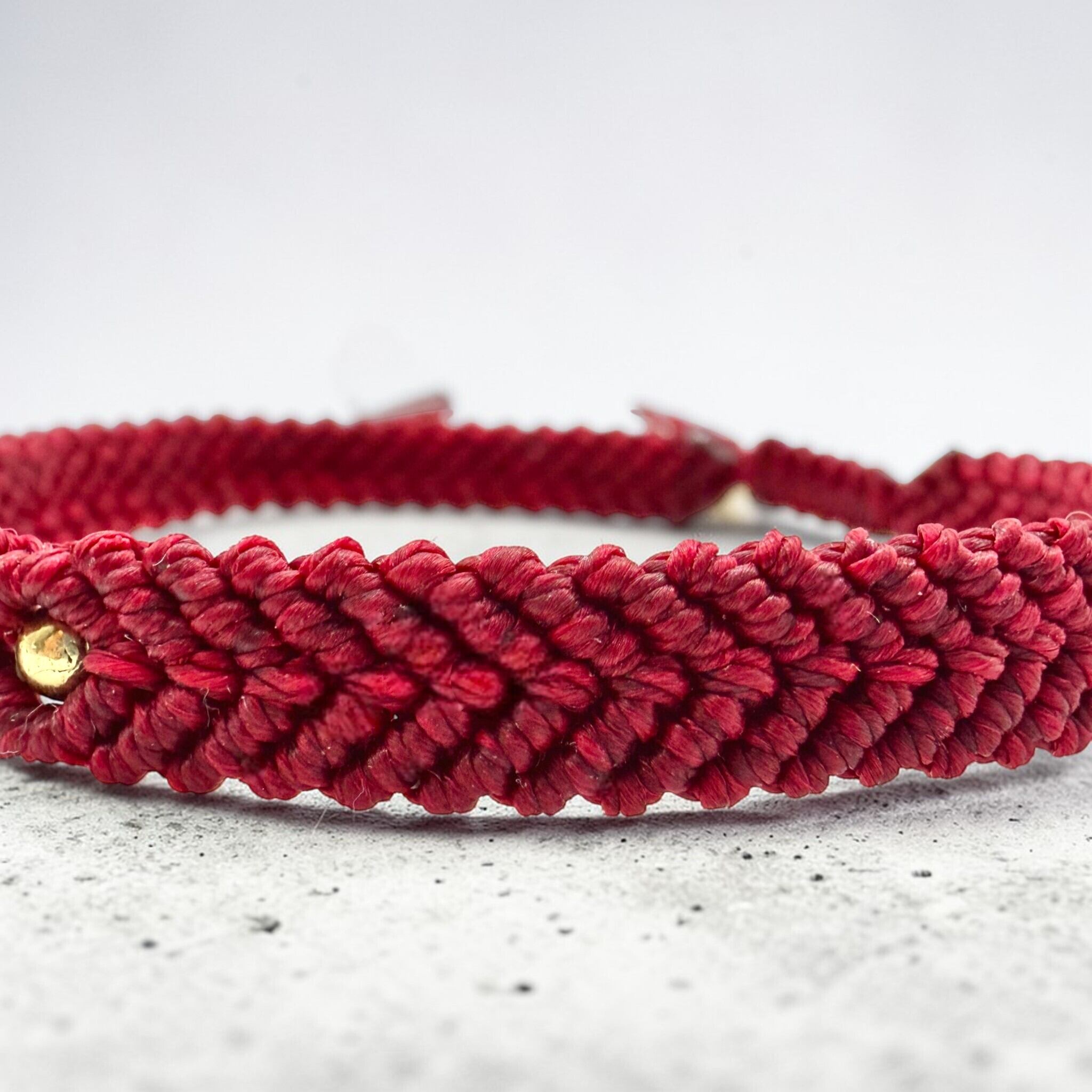 ワックスコードを一目一目手で編んだ、マクラメブレスレットです。
