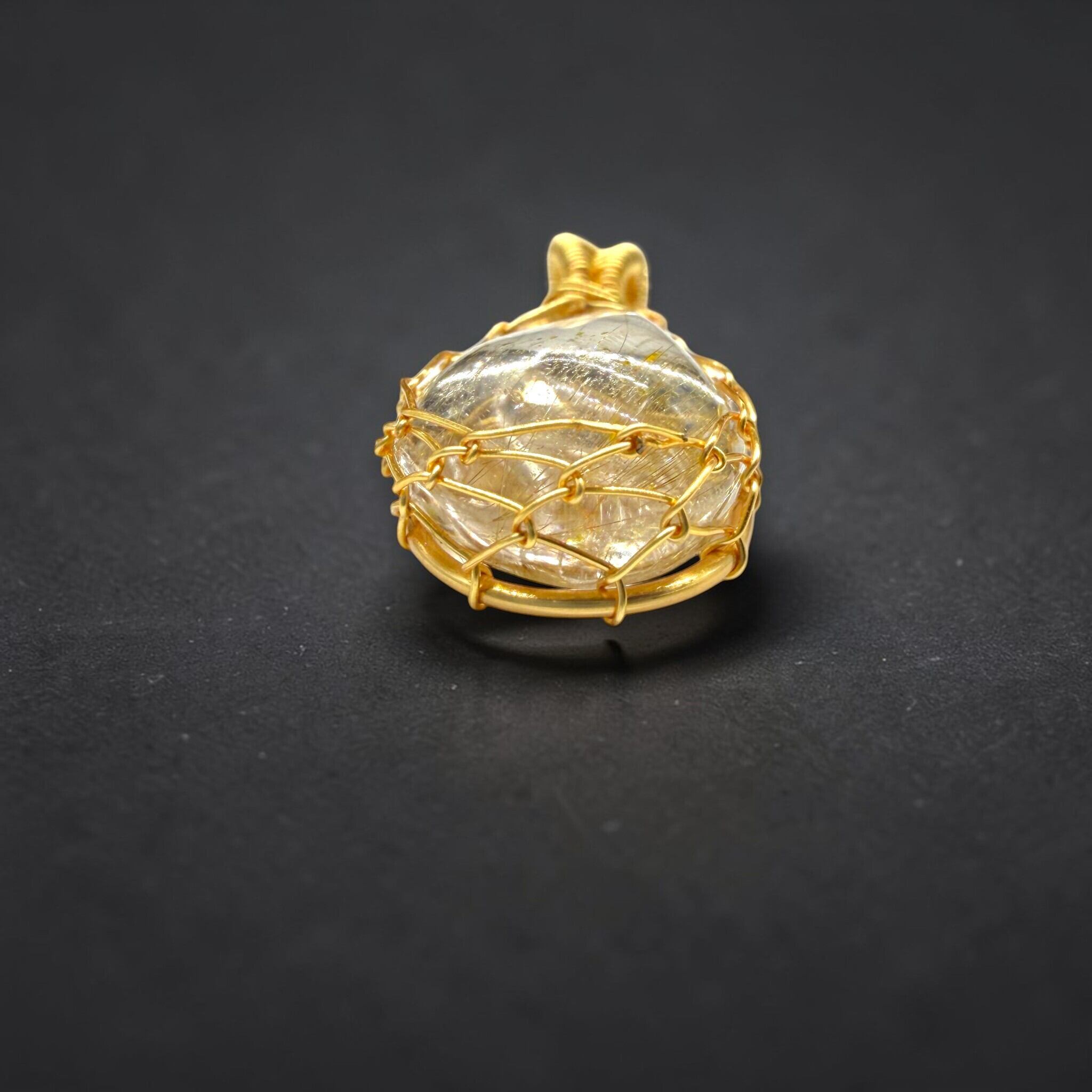 黄金色の針が石の中に広がるこの模様は、二つとして同じものがなく、