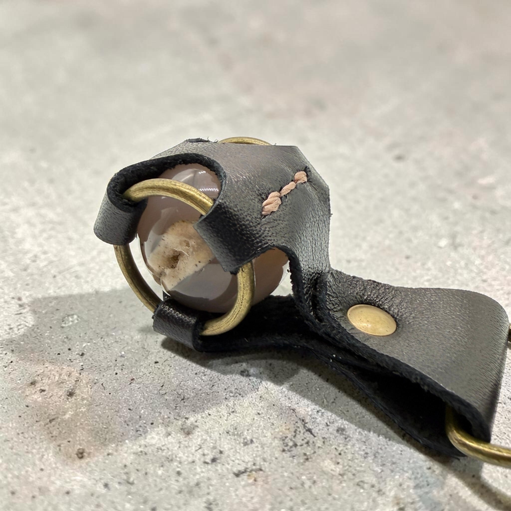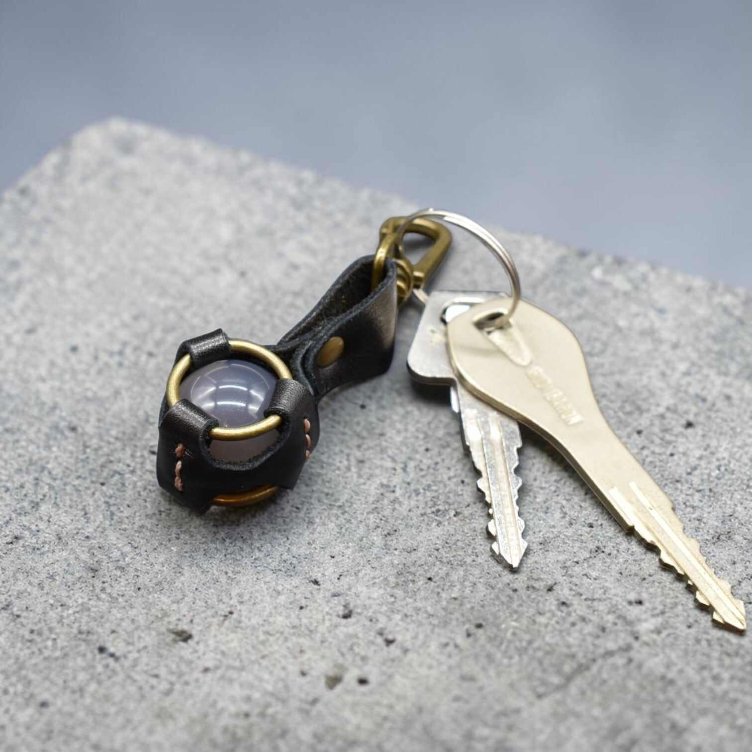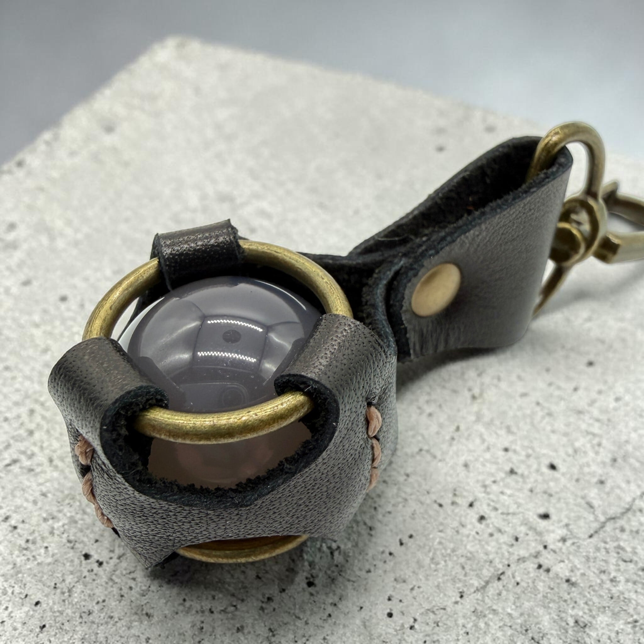 【天然のワイルド】グレーアゲート 丸玉レザーキーホルダー|本革 天然の割れ目 一点物【送料無料】