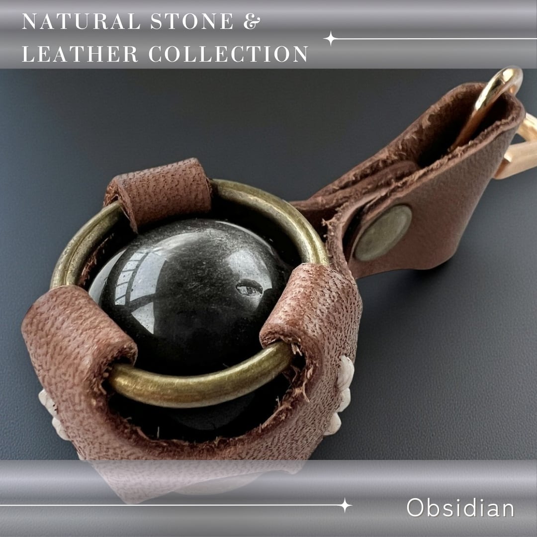 天然石をレザーで保護しているため、鍵やバッグに付けて日常使いしやすい設計。